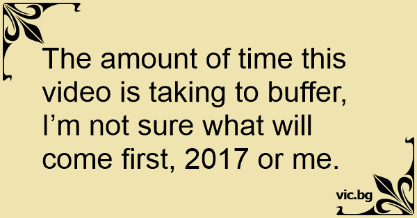 The amount of time this video is taking to buffer, I’m not sure what will come first, 2017 or me.