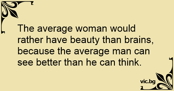 The average woman would rather have beauty than brains, because the average man can see better than he can think.