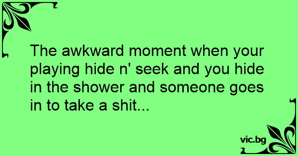 The awkward moment when your playing hide n' seek and you hide in the shower and someone goes in to take a shiт...