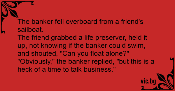 The friend grabbed a life preserver, held it up, not knowing if the banker could swim, and shouted, "Can you float alone?"