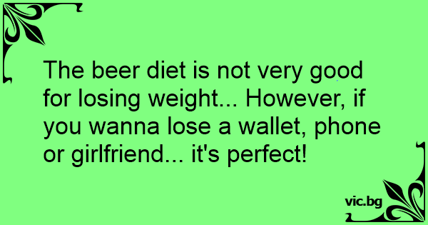 The вееr diet is not very good for losing weight... However, if you wanna lose a wallet, phone or girlfriend... it's perfect!