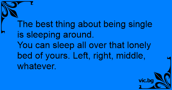 The best thing about being single is sleeping around.