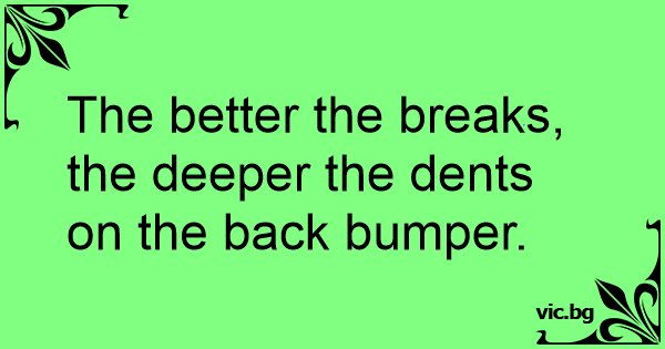 The better the breaks, the deeper the dents on the back bumper.