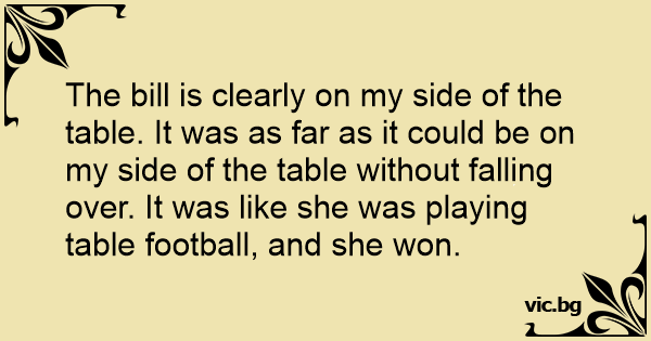 The bill is clearly on my side of the table. It was as far as it could be on my side of the table without falling over. It was like she was playing table football, and she won.