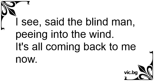 I see, said the blind man, peeing into the wind.