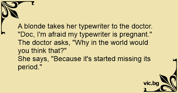 A blonde takes her typewriter to the doctor. "Doc, I'm afraid my typewriter is pregnant."