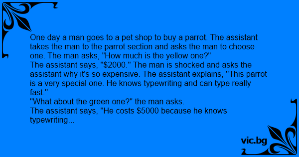 Влиза клиент в зоомагазин и пита продавача, защо папагалите са с различна цена. Продавачът му обяснява: