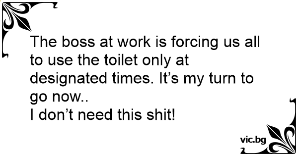 The boss at work is forcing us all to use the toilet only at designated times. It’s my turn to go now..