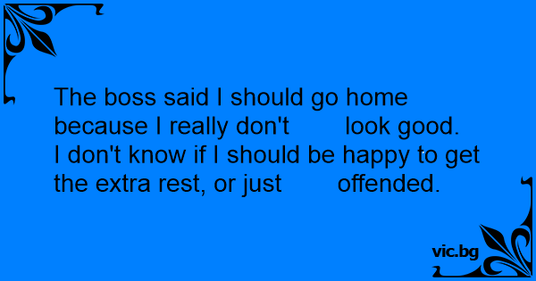 The boss said I should go home because I really don't look good.