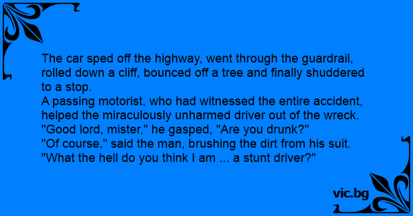 "Of course," said the man, brushing the dirt from his suit. "What the hеll do you think I am ... a stunt driver?"