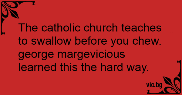 The catholic church teaches to swallow before you chew. george margevicious learned this the hard way.