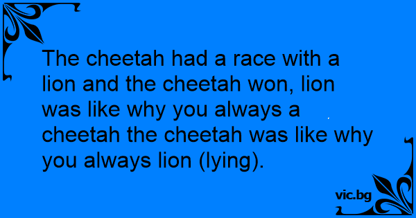 The cheetah had a race with a lion and the cheetah won, lion was like why you always a cheetah the cheetah was like why you always lion (lying).