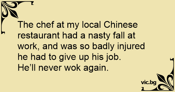 The chef at my local Chinese restaurant had a nasty fall at work, and was so badly injured he had to give up his job.