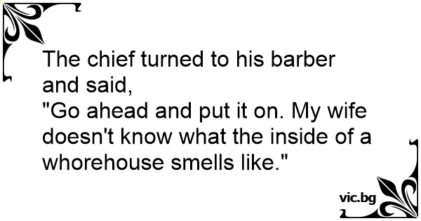 "Go ahead and put it on. My wife doesn't know what the inside of a whоrеhоusе smells like."
