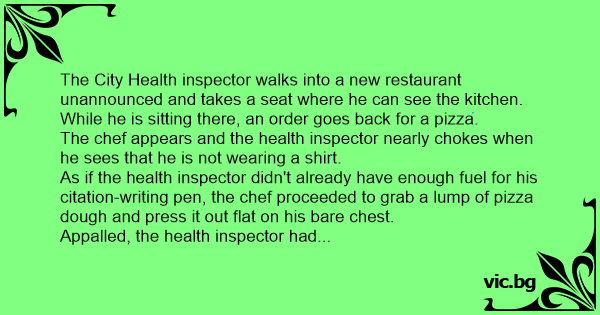 As if the health inspector didn't already have enough fuel for his citation-writing pen, the chef proceeded to grab a lump of pizza dough and press it out flat on his bare chest.