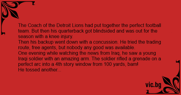 The Coach of the Detroit Lions had put together the perfect football team. But then his quarterback got blindsided and was out for the season with a knee injury.