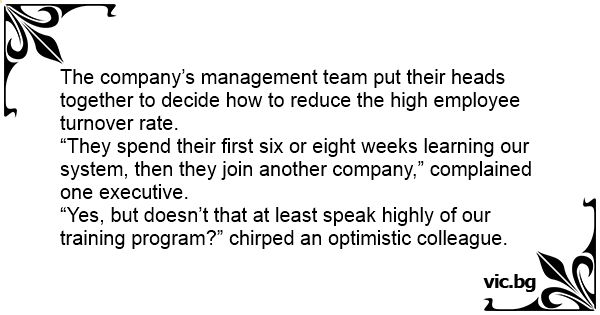 “Yes, but doesn’t that at least speak highly of our training program?” chirped an optimistic colleague.