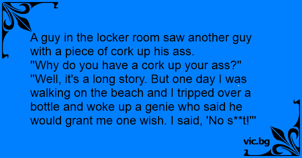 A guy in the locker room saw another guy with a piece of cork up his аss.