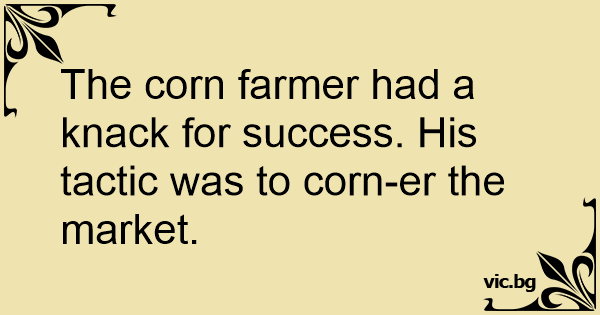 The corn farmer had a knack for success. His tactic was to corn-er the market.