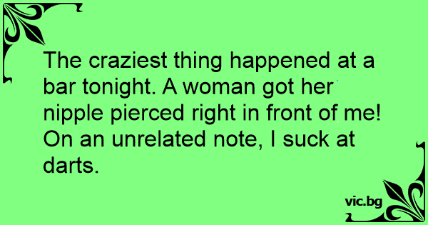The craziest thing happened at a bar tonight. A woman got her niррlе pierced right in front of me!
