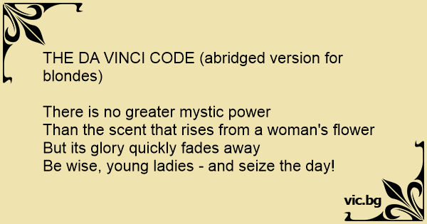 THE DA VINCI CODE (abridged version for blondes)
