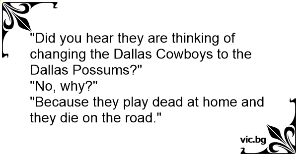 "Did you hear they are thinking of changing the Dallas Cowboys to the Dallas Possums?"