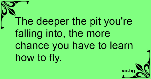 The deeper the pit you're falling into, the more chance you have to learn how to fly.