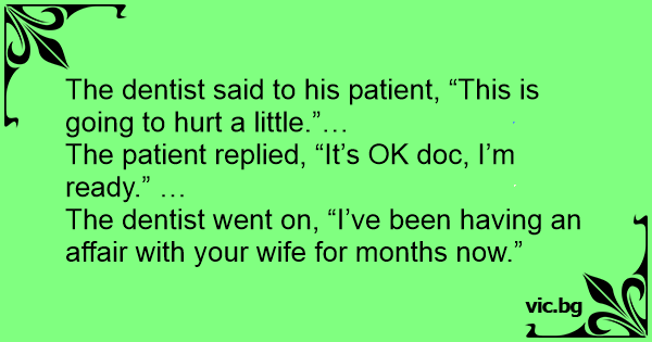 The dentist went on, “I’ve been having an affair with your wife for months now.”