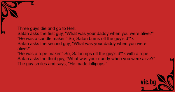 Satan asks the third guy, "What was your daddy when you were alive?"