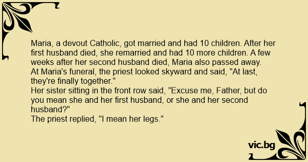 At Maria's funeral, the priest looked skyward and said, "At last, they're finally together."