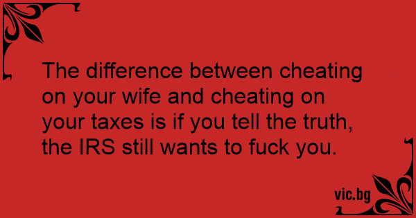The difference between cheating on your wife and cheating on your taxes is if you tell the truth, the IRS still wants to fuск you.