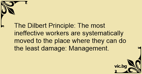 The Dilbert Principle: The most ineffective workers are systematically moved to the place where they can do the least damage: Management.