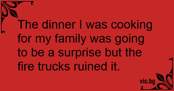 The dinner I was cooking for my family was going to be a surprise but the fire trucks ruined it.