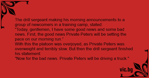 "Today, gentlemen, I have some good news and some bad news. First, the good news Private Peters will be setting the pace on our morning run.”