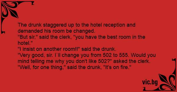 The drunк staggered up to the hotel reception and demanded his room be changed.