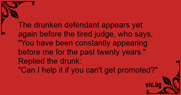 The drunken defendant appears yet again before the tired judge, who says, "You have been constantly appearing before me for the past twenty years." Replied the drunк: