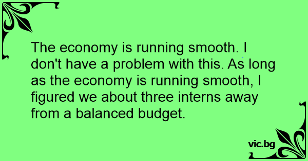 The economy is running smooth. I don't have a problem with this. As long as the economy is running smooth, I figured we about three interns away from a balanced budget.