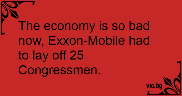 The economy is so bad now, Exxon-Mobile had to lay off 25 Congressmen.