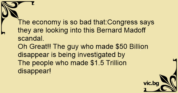 The economy is so bad that:Congress says they are looking into this Bernard Madoff scandal.