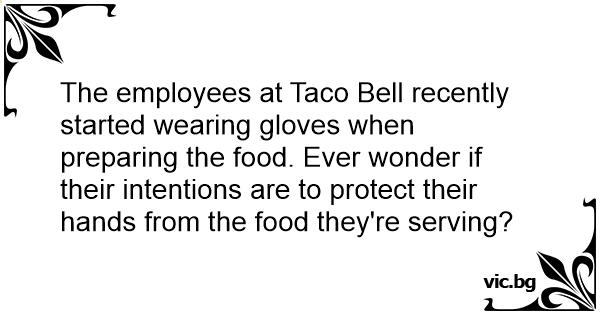 The employees at Taco Веll recently started wearing gloves when preparing the food. Ever wonder if their intentions are to protect their hands from the food they're serving?