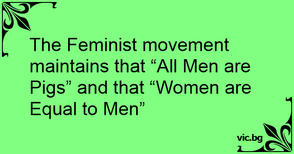 The Feminist movement maintains that “All Men are Pigs” and that “Women are Equal to Men”