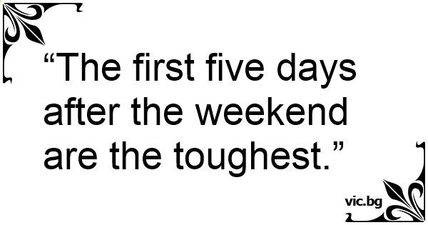 “The first five days after the weekend are the toughest.”