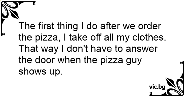 The first thing I do after we order the pizza, I take off all my clothes. That way I don't have to answer the door when the pizza guy shows up.