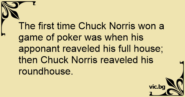 The first time Chuck Norris won a game of poker was when his apponant reaveled his full house; then Chuck Norris reaveled his roundhouse.