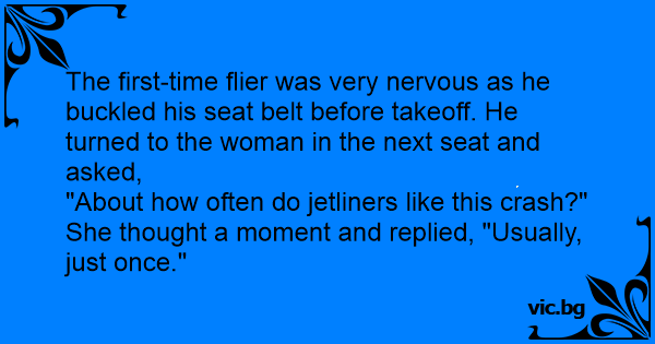 The first-time flier was very nervous as he buckled his seat belt before takeoff. He turned to the woman in the next seat and asked,