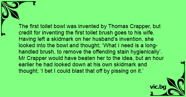 The first toilet bowl was invented by Thomas Crapper, but credit for inventing the first toilet brush goes to his wife.