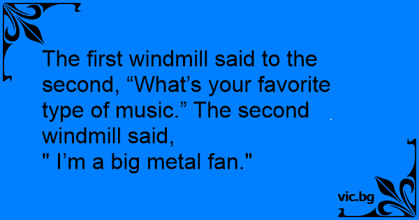 The first windmill said to the second, “What’s your favorite type of music.” The second windmill said,