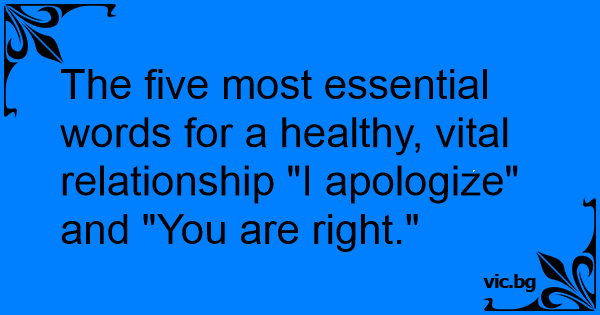 The five most essential words for a healthy, vital relationship "I apologize" and "You are right."