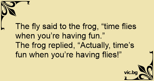 The fly said to the frog, “time flies when you’re having fun.”