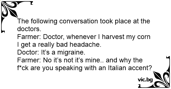 Farmer: Doctor, whenever I harvest my corn I get a really bad headache.